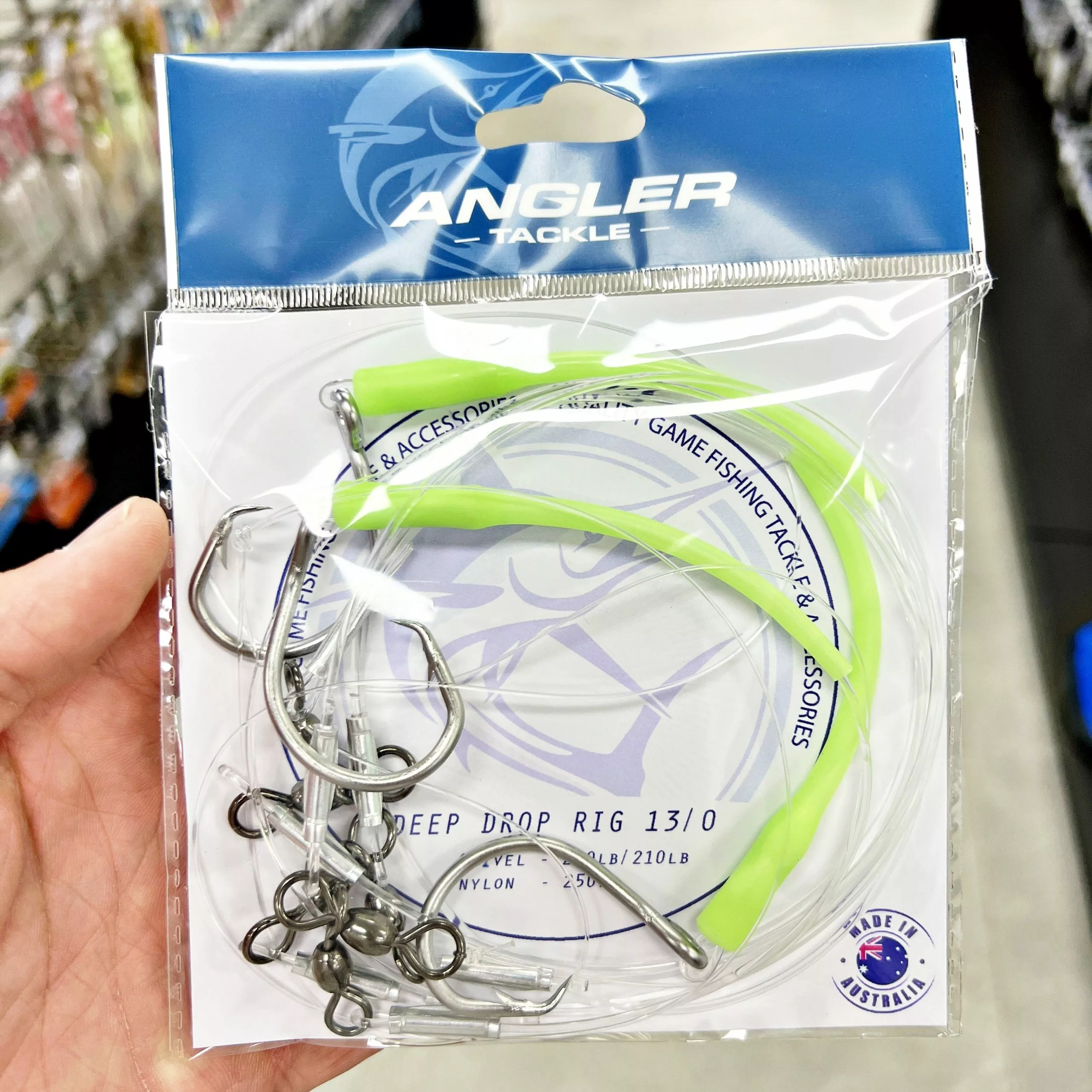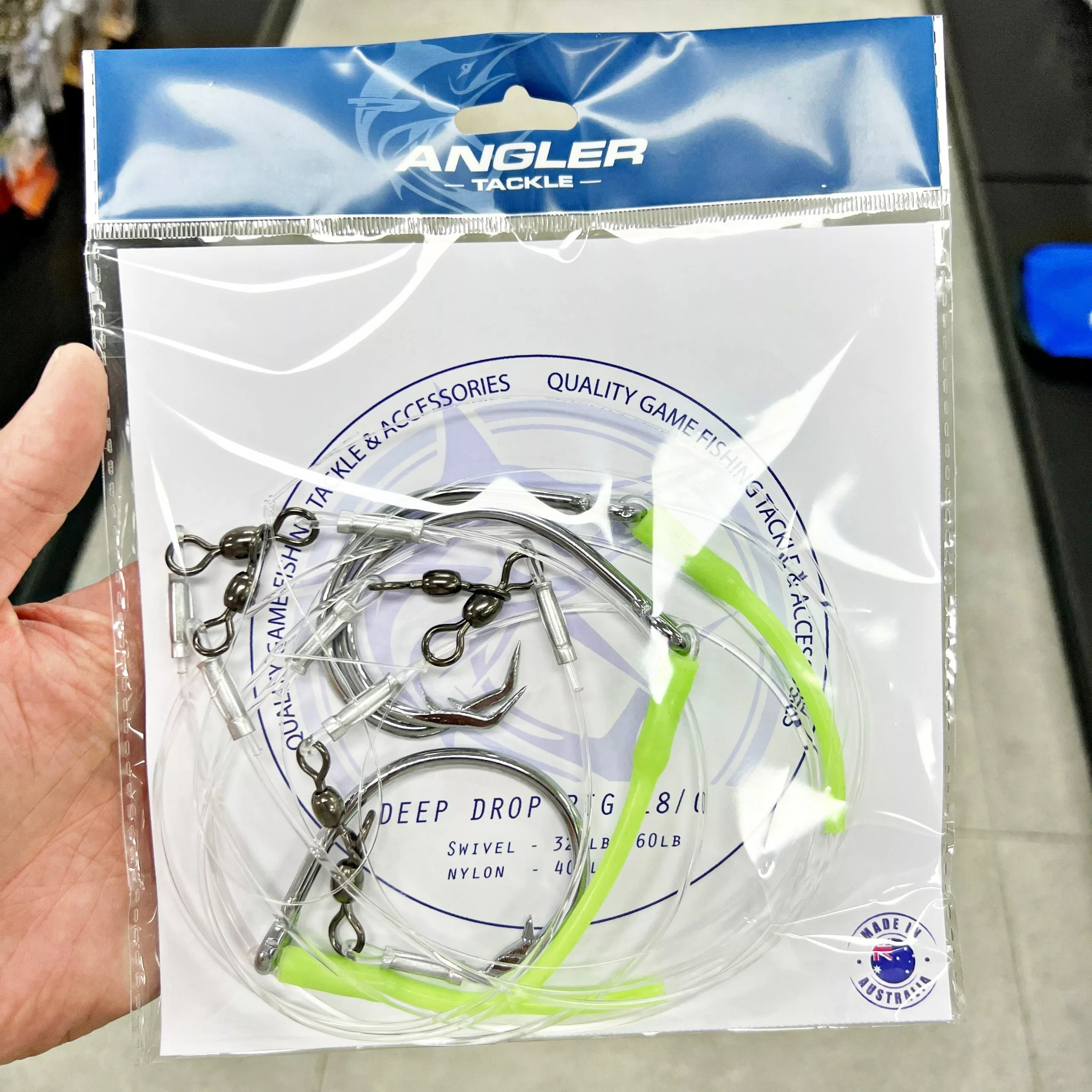 Locally hand made deep drop rigs for fishing in depths over 150mt. We have designed these rigs to be ideal for targeting super deep species like grey banded cod, blue eye trevella, ruby snapper etc. Fitted with large circle hooks.