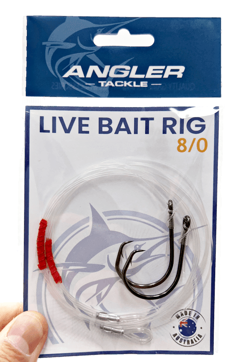 Take the hassle and time out of making rigs with our Angler pre made rigs! This live bait rig is made with quality flurocarbon line, inline circle hooks and crimped connections. The perfect rig for live baiting at the FADs or pitching livies at billfish. 2 rigs per pack
