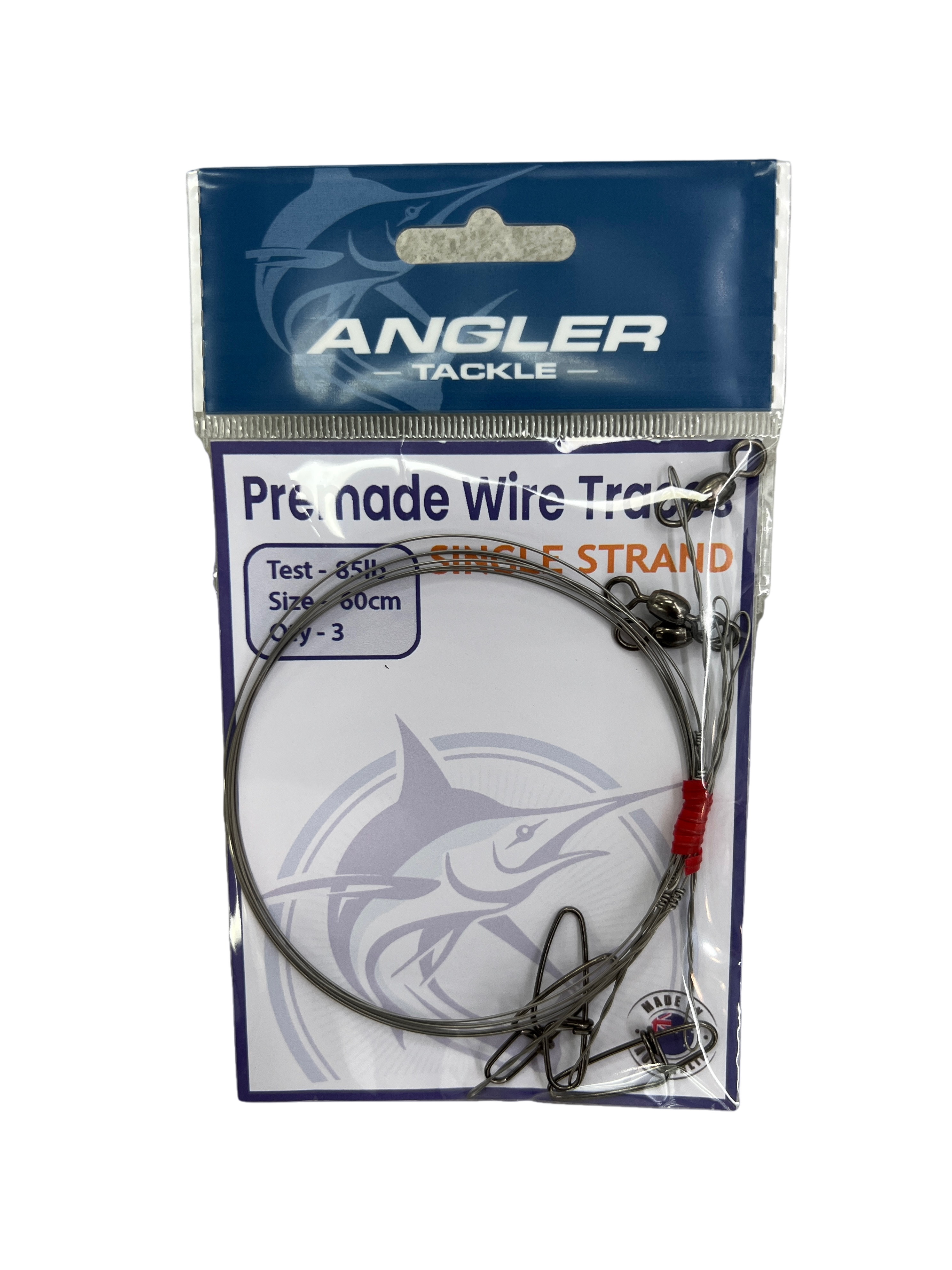 Angler Single Strand Wire Trace are a premium quality bite proof protection for using when trolling. Simply tie you line onto the swivel end and clip your lure onto the heavy duty clip. These are made from 316 Stainless Wire.