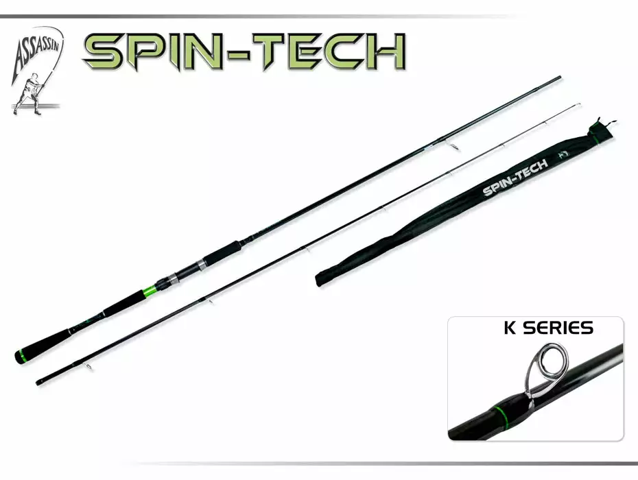 The Assassin Spin Tech series of rods are ideally suited for the angler that loves to spin lures from the shore. If you are casting metal slugs or stick-baits this rod is well worth looking at. This series features K series tangle free guides for super long lasting.Â