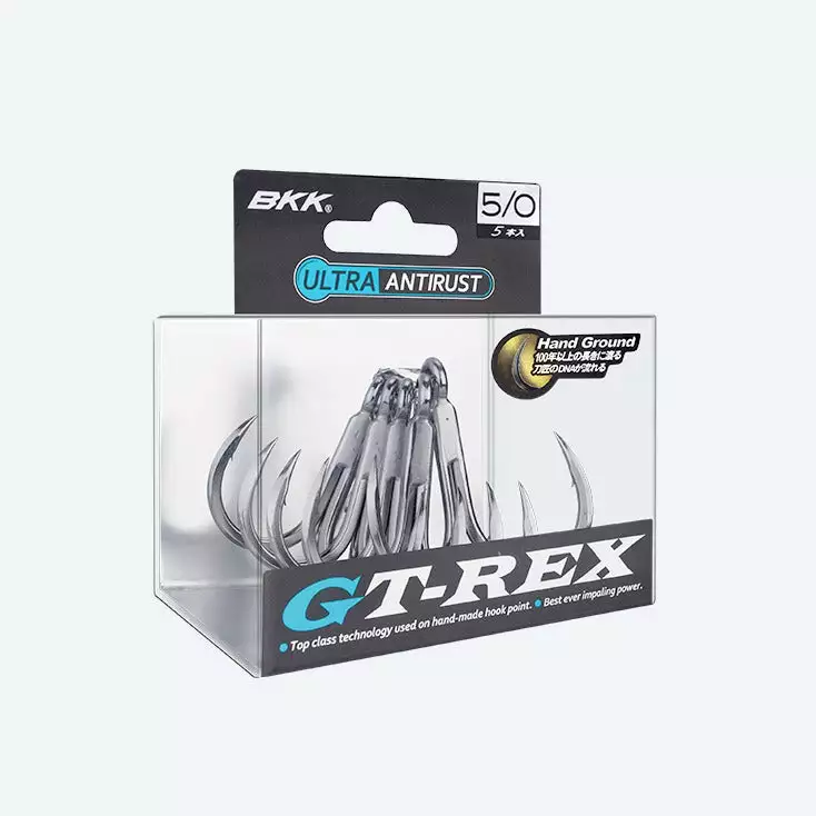 The BKK GT-REX Treble is the ultimate big game hook for serious offshore anglers who are chasing that dream fish. They Feature an Ultra Sharp cutting points for the best penetration.Â