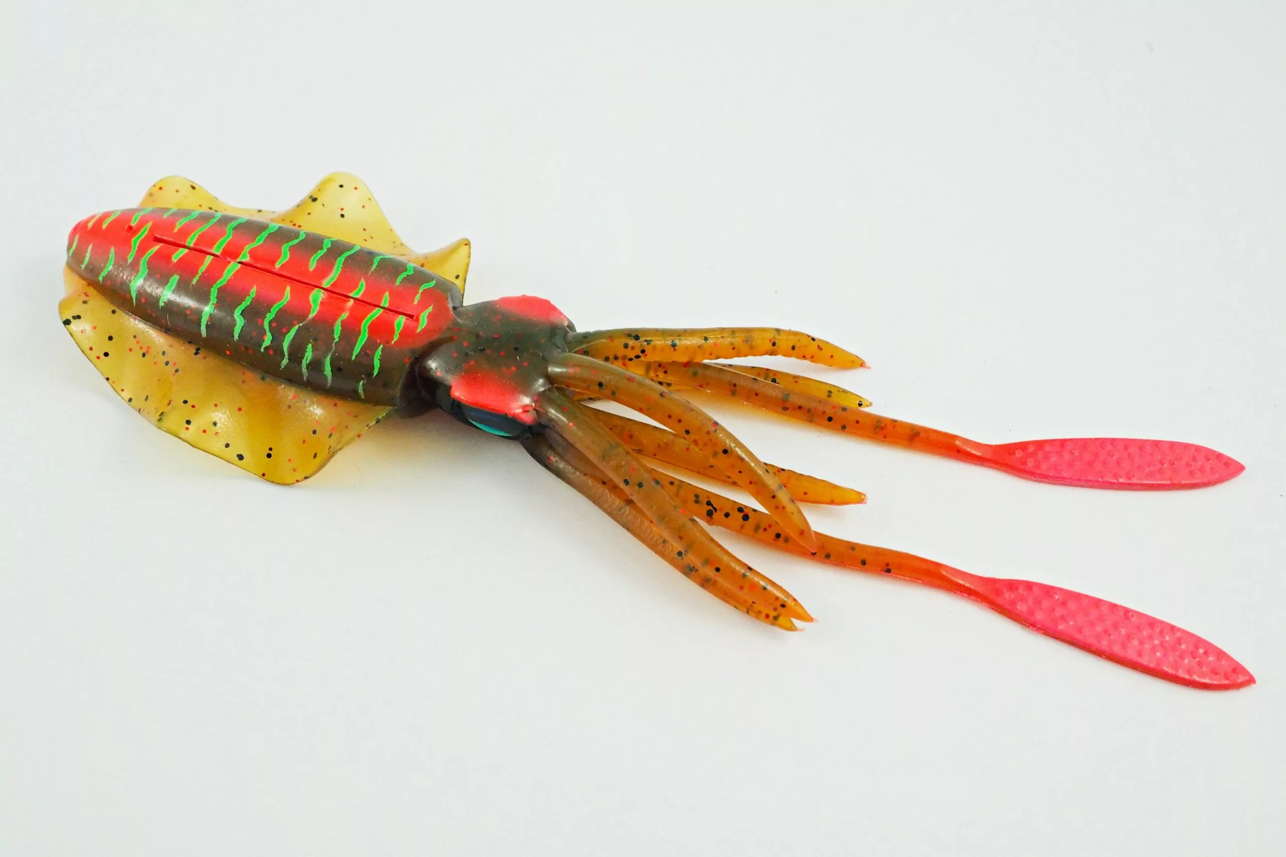 Designed to be the most realistic Squid ever made. The wings will mesmerize you with the most realistic roll and swim action just like a real squid. With custom 3D squid eyes, custom scent, contracting tentacles and extended candles that flutter with any movement.