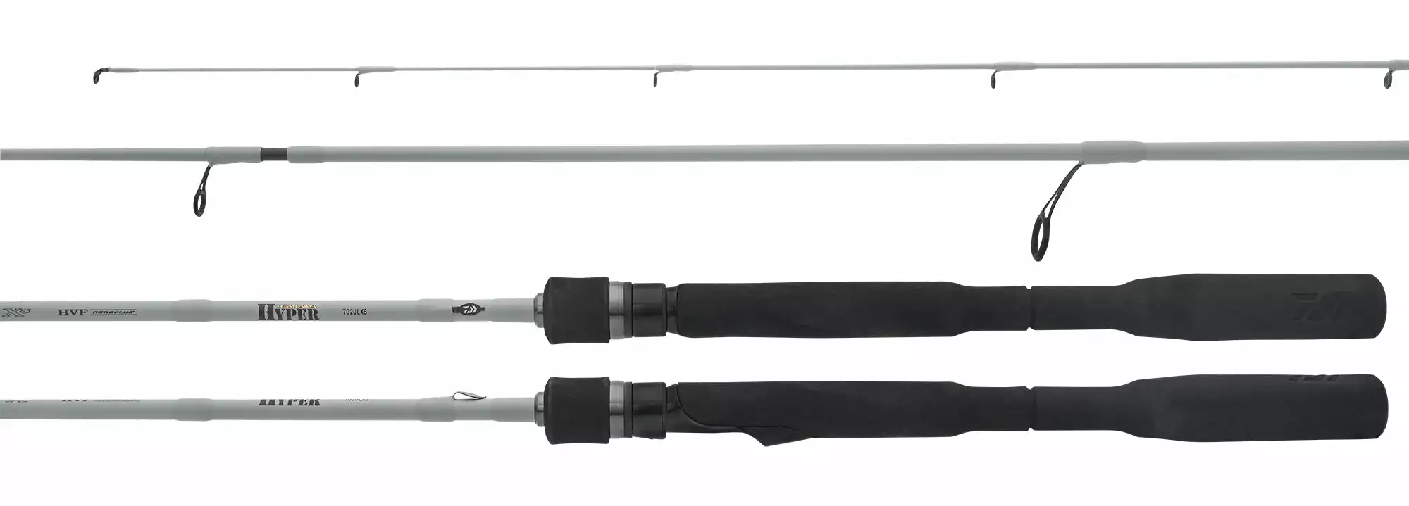 Light, powerful and designed for ultimate strength and performance this is the spinning and baitcaster series that delivers unrivalled value. Combining Daiwa advanced blank design with outstanding value the TD Hyper series is undeniably impressive and built to perform. Light, powerful and designed for ultimate strength and performance this is the spinning and baitcaster series that delivers unrivalled value.