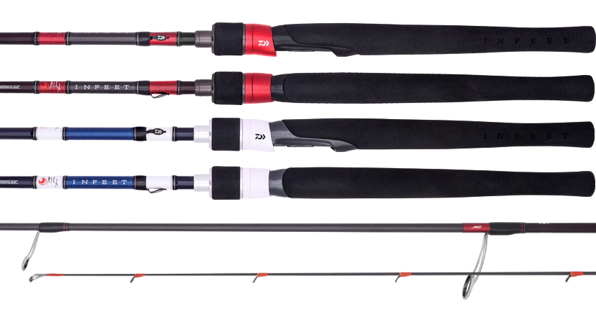 Certain INFEET EX models also feature solid-tip constructions for unmatched combinations of light, fast action tips and the perfect fish controlling action down low. Finishing off the piece is Daiwa’s Air Foam grips for unmatched comfort and further reducing the weight.