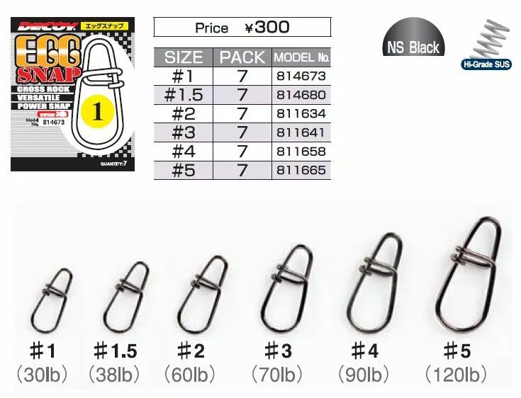 The Decoy Egg Snap is Made from hypower stainless steel and finished in double black nickel plate are of crosslock configuration. This makes it an extra strong snap for its size and allows the lure to have maximum action.Â