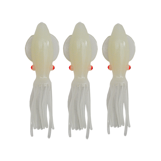 The SW Lab Lumo Bottle Squid feature a Hi-Glow Luminous Body that glow ultra bright. Ideal for adding to bottom fishing rigs for extra attraction. They feature super bright eyes are 4″ long and come with 3 pcs per packet.