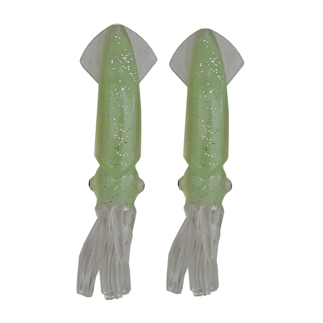 The SW LAB Hollow Squid is a Hi Glow Soft Hollow Squid for attaching to your bottom fishing rigs. They feature a Hi-Glow Luminous Body that glows ultra bright. They are 5″ long and come with 2 pcs per packet.