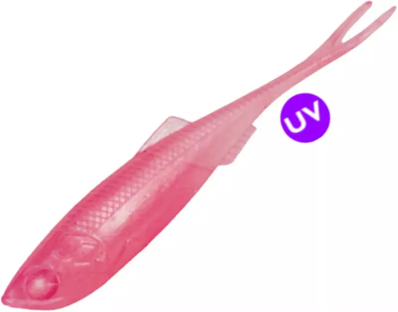 Its shape and V-tail produces an attractive movement, giving this lure various possibilities of use: with jig heads or with weedless hooks for fishing in areas full of obstacles, and for vertical presentations such as those needed when fishing for Pelagics.