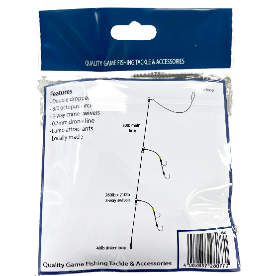 Take the hassle and time out of making rigs and try out our premium Angler Demersal Drone Fishing Rig. Designed specifically to be exactly what you need for droning with a 0.7mm drone dropper that fits drone mechanical and automatic releases. Featuring twin snelled droppers with 8/0 octopus circle hooks. Comes with foam rig holder that can be reused. One rig per pack